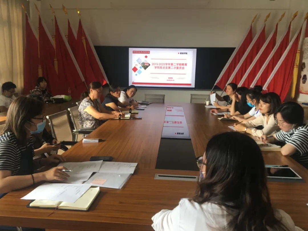 5月19日,2019-2020学年第二学期教育学院党总支第二次委员会(扩大)会议在三教406举行。教育学院党总支书记金明华、副书记杨淑雯、学生科科长胡海波以及教育学院各支委参加会议。