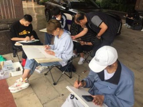 图4专注采风绘画的同学们