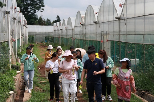 随后,同学们在闫霏书记的带领下继续实地考察当地特色生态农庄——陶源溪谷生态庄园,该庄园总投资2.13亿,距集镇所在地7公里,距离县城仅10公里。庄园以黄桃种植加工为主,以特色林果种植为辅,以乡村旅游发展为目标,有序种植黄桃、车厘子、砀山梨等30个特色品种,果木11余万株,建成生态餐厅、水上乐园、温室大棚、冷库、摘桃感受等配套设施完善的陶源溪谷,成为富源庄园经济、乡村旅游发展的典范。